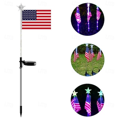 luces solares decorativas, luces solares LED para exteriores, bandera de Estados Unidos, banderas decorativas, bandera patriótica para jardín, focos solares para paisajismo, luces solares para jardín,