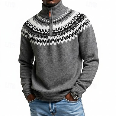 Hombre Pulóveres Suéteres con cremallera de un cuarto Suéter de punto Estriado Tejer Tops regulares De Punto Geométrico Cremallera de un cuarto Vintage Moda Casual Ropa Cotidiana Ropa Otoño Invierno