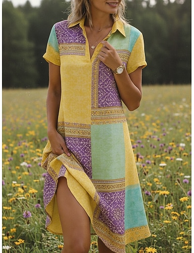 Mujer Vestido hasta la Rodilla Vestido informal Vestido Estampado Moda Clásico Moderno Exterior Vacaciones Noche Ajuste regular Floral Manga Corta Cuello Camisero Amarillo Rosa Verano Primavera