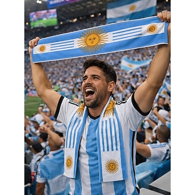 Bufanda de toalla de poliéster para hombre con estampado de la bandera argentina, bufanda suave para aficionados al fútbol, ideal para animar en los días de partido, eventos en estadios, ver deportes y para uso diario informal.