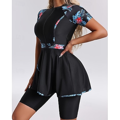 Mujer Camiseta Protección Solar Surf Traje de baño Trajes de baño Tropical Cerrar Pierna hasta medio muslo Protección UV Secado rápido Alta elasticidad Manga Corta Bañadores Traje de baño Surf