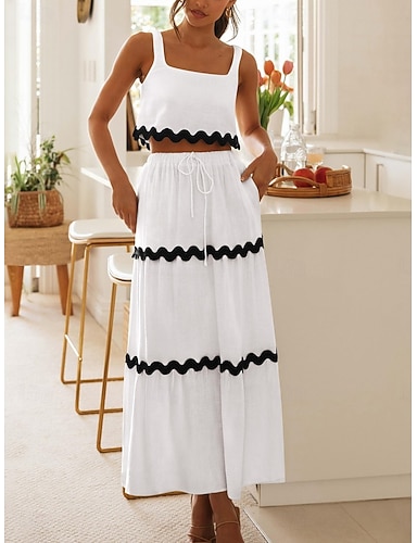 Mujer Vestido maxi Vestido blanco Elegante Moda Moderno Exterior Vacaciones Noche Ajuste regular Plano Sin Mangas Escote Cuadrado Blanco Verano Primavera