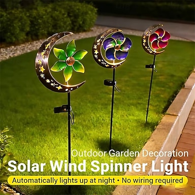 Molinillo de viento solar con forma de luna, estacas de metal para jardín, decoración exterior, molinillos de viento para patio, impermeables, para iluminación de caminos y paisajes, 1 unidad.