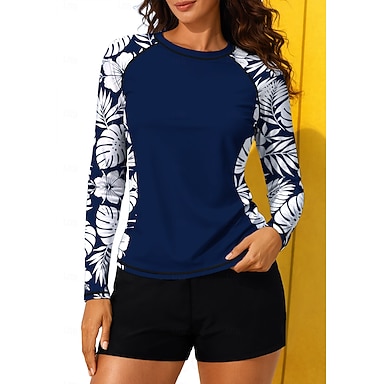 Mujer Regular Traje de baño Anti UV Camiseta Protección Solar Surf Traje de baño con estampado floral Flores Tropical Bloqueo de color 2 Piezas Acolchado extraíble Boyleg Protección solar UV UPF50