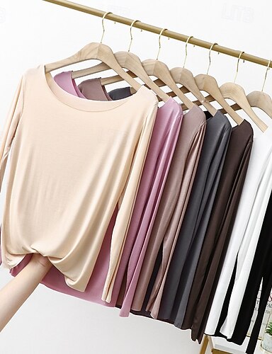 Mujer Camiseta Plano Moda Elegante Básico Manga Larga Cuello Barco Tops regulares Diario Fin de semana Negro Blanco Rosa Caqui Beige Verano Primavera Otoño