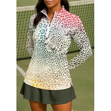 Mujer Animal Leopardo Degradado Camisas Camisa deportiva Camisas de polo Camiseta de tenis Manga Larga Cremallera Floral UPF50+ Resistente a los rayos UV Alta elasticidad Dispersor de humedad