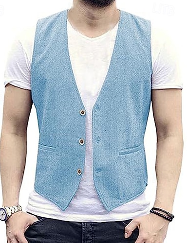 Hombre Chaleco Chaleco de lino Vacaciones Fiesta Negocio Moda Casual Primavera Otoño Bolsillo Botones Mezcla Lino Algodón Cómodo Plano Recto 1 botón Escote en Pico Ajuste regular Negro Blanco Marfil