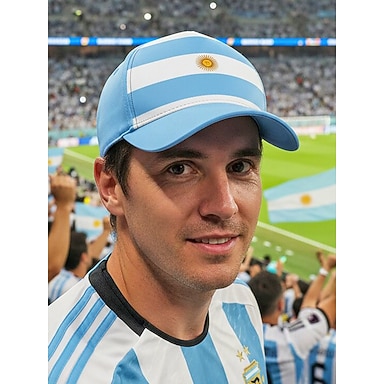 Gorra de béisbol de poliéster para hombre con los colores de la bandera argentina, ajuste regulable, ideal para aficionados al fútbol, para el día del partido, eventos de apoyo al fútbol, ropa deportiva informal y para el uso diario al aire libre.