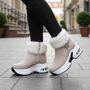 Zapatillas de deporte cálidas con forro de piel para mujer, zapatos de invierno casuales antideslizantes e impermeables para uso al aire libre en climas fríos.