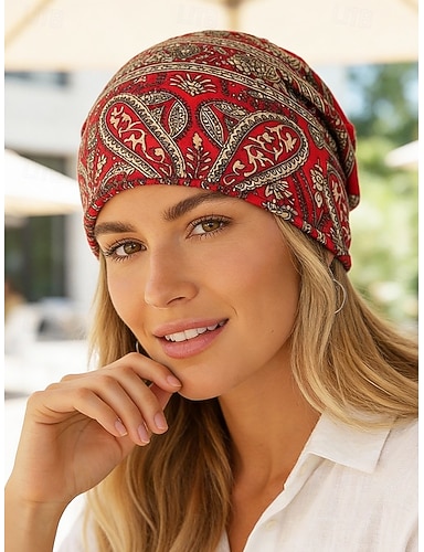 Gorro bohemio con estampado paisley para mujer, suave gorro y braga para el cuello de poliéster multicolor, accesorio ligero de estilo vintage para mujer, perfecto para uso diario informal, vacaciones y viajes.