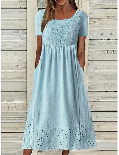 Mujer Vestido Midi Vestido informal Vestido de flores Vestido Estampado Elegante Moda Moderno Exterior Vacaciones Noche Ajuste regular Floral Manga Corta Cuello Barco Azul Piscina Verano Primavera