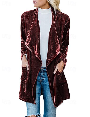 Mujer Gabardina Americanas De Terciopelo Mantiene abrigado Cómodo Asimétrico Frente Abierto Activo Moda Plano Fiesta Fiesta / Noche Evento / Fiesta Casual Regular Largo Sin Cuello Ajuste regular
