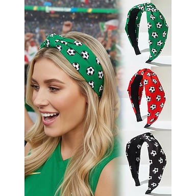 Diadema anudada de poliéster con estampado de fútbol para mujer en varios colores. Accesorio para el cabello de aficionada al fútbol para partidos, para apoyar al equipo y para uso diario informal.
