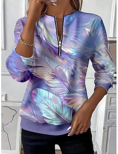 Mujer Sudadera Cremallera Estampado Floral Graphic Moda Casual Manga Larga Escote Redondo Tops regulares Calle Uso Diario Azul Piscina Morado Otoño Invierno