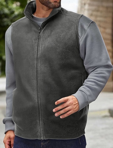 Hombre Chaleco al aire libre Chaleco Casual Exterior Vacaciones Moda Ropa de calle Invierno Otoño Full Zip Vellón Polyester Mantiene abrigado Plano Cremallera Escote Chino Ajuste regular Negro Marrón