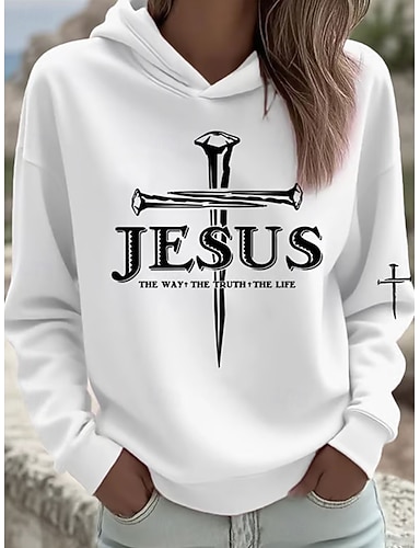 Mujer Sudadera con capucha Pullover Graphic Letra Casual Manga Larga Con Capucha Tops regulares Casual Uso Diario Deportes Azul Piscina Negro Blanco Rojo Gris Primavera Otoño