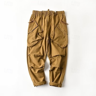 Hombre Pantalones cargo Pantalones Cintura elástica Correa Multi bolsillo Plano Listo para vestir Exterior Diario Acampada y Senderismo Moda Clásico Verde Trébol Caqui