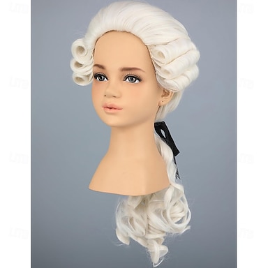 Peluca de disfraz colonial, rubia blanca y rizada del siglo XVIII para mujer adulta, peluca de cosplay para vestido victoriano.
