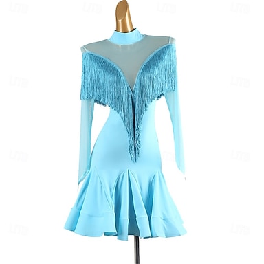 Baile Latino Vestido Borla Mujer Rendimiento Entrenamiento Manga Larga Cintura Alta Licra Tul