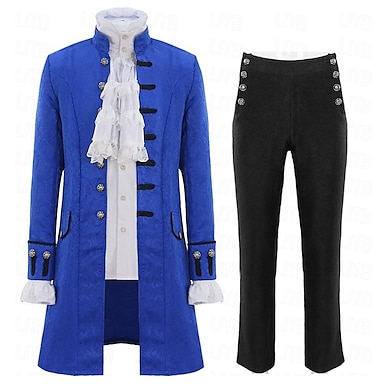 Conjunto de Ropa Medieval Victoriana para Hombre 2 PCS Camisa Steampunk Vintage Retro Abrigo Trinchera Vampiro Disfraz de Halloween Fiesta Máscara Navidad Ebenezer Scrooge Duende