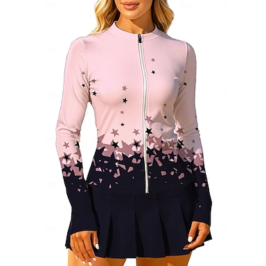 Mujer Unisexo Geométrico Degradado Estrellas Tops Camisa deportiva Camiseta de tenis Top de tenis Manga Larga Cremallera Floral UPF50+ Resistente a los rayos UV Alta elasticidad Dispersor de humedad
