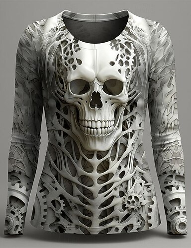Camiseta de mujer Calaveras Gráfica Moda Vintage Casual Manga Larga Cuello Redondo Tops Regulares Impresión Diaria de Fin de Semana Rojo Azul Púrpura Verde Gris Otoño Invierno