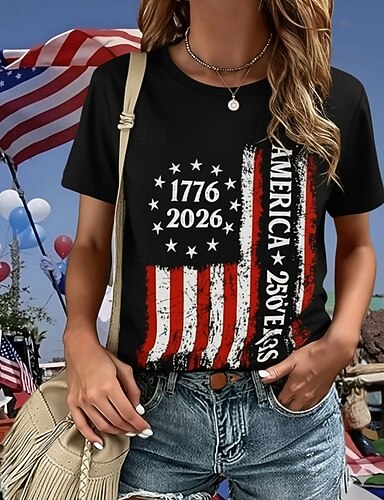 Día de la Independencia Aniversario Americano Patriótico Camiseta de Mujer Gráfica Bandera Vintage Elegante Clásica Manga Corta Cuello Redondo Impresión Diaria Fin de Semana Negra Verano Primavera