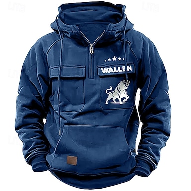Hombre Sudadera Con Capucha Sudadera con un cuarto de cremallera Táctico Vino Azul Marino Verde Trébol Caqui Media cremallera Bloque de color Bolsillo Bloque de Color Casual Diario Vintage Casual