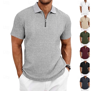 Hombre polo con cremallera Con Texturas Diario Exterior Cremallera de un cuarto Manga Corta Moda Plano Cremallera de un cuarto Verano Primavera Ajuste regular De color verde oscuro Vino Azul marinero