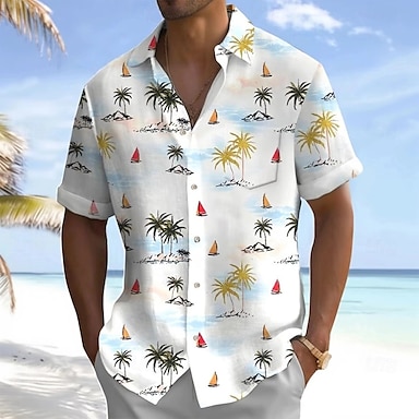 Hombre Árbol de coco Velero Plantas tropicales Camisa camisa hawaiana Abotonar la camisa Manga Corta Hawaiano Festivos Ropa de playa Verano Primavera Cuello Vuelto Impresión 3D camisas con cuello Un
