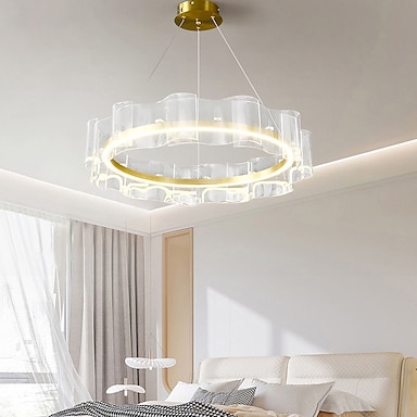 Luz colgante LED 45 cm Anillo de 1 luz Diseño circular Acrílico blanco cálido Acabados pintados Lujoso estilo moderno Comedor Dormitorio Lámparas colgantes 110-240 V