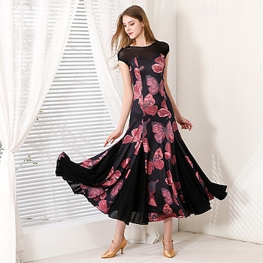 Baile de Salón Vestido Estampado Plisado Corte Mujer Fiesta Entrenamiento Rendimiento Manga Corta Licra Poliéster