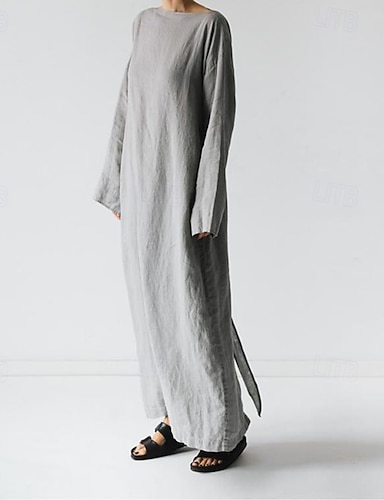 Mujer vestido largo vestido largo Lino de algodón sintético Vestido de cambio Vestido informal Elegante Moda Moderno Diario Vacaciones Noche Ajuste regular Plano Manga Larga Hombros Caídos Marrón