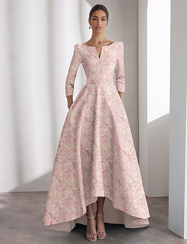 Corte A Hasta el Tobillo Vestido Midi Vestido Invitada Boda Vestido de Madrina Manga 3/4 Diseño Elegante Vintage Formal Invitado a la boda Fiesta de Boda Jacquard con Estampado flor Cinta / Lazo