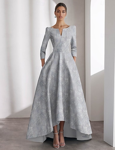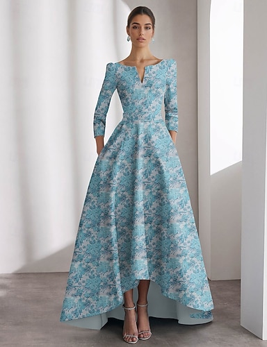 Corte A Vestidos Vestido alto-bajo Hasta el Tobillo Vestido Cóctel Vestido de Madrina Manga 3/4 Escote Barco Elegante Sencillo Formal Invitado a la boda Semi-formal con Volantes Bordados Apliques