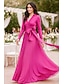 Corte A Hasta el Suelo Vestido de raso Vestido Invitada Boda Vestido formal Vestido de Madrina Manga Larga Cuello Camisero Elegante Vintage Formal Invitado a la boda Iglesia Gasa Satén con Lazo(s