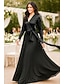 Corte A Vestido Midi Vestido blazer Vestido de Madrina Manga Larga Cuello Camisero Elegante Vintage Formal Invitado a la boda Fiesta de Boda Satén Jacquard con Plisado Flor
