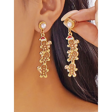 Pendientes navideños de aleación para mujer con diseños de muñeco de nieve y reno, joyería festiva para fiestas y celebraciones.