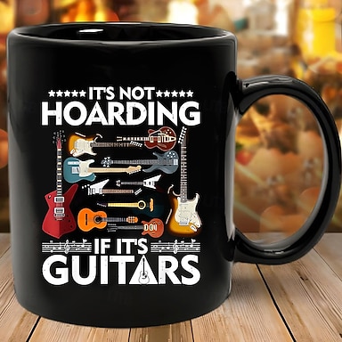 Divertida taza de regalo "Si son guitarras, no es acaparamiento". Taza de café de cerámica negra. Regalo perfecto para entusiastas de la guitarra y amantes de la música. Ideal para músicos y