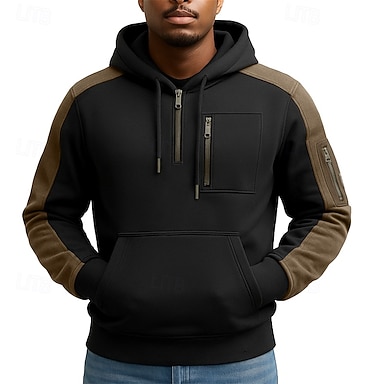 Hombre Sudadera Sudadera con capucha y cremallera de un cuarto Sudadera táctica con capucha Negro Con Capucha Bloque de color Plano Cremallera Bolsillo canguro Casual Diario Deporte Fresco Ropa