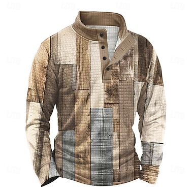 Hombre Geométrico Plaid Waffle Sudadera Diario Clásico Casual Escote Chino Exterior Hogar Trabajo Regalo Azul Piscina Verde Trébol Caqui Botones Otoño Invierno Diseñador S M L XL XXL XXXL
