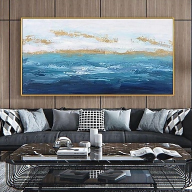 Pintura al óleo hecha a mano, arte de pared, decoración moderna abstracta de olas marinas para sala de estar, decoración del hogar, marco estirado, pintura colgante/lienzo enrollado (sin marco)