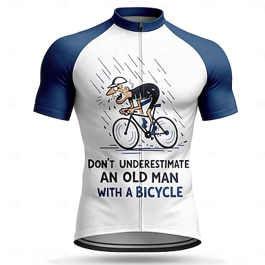 Hombre Maillot de Ciclismo Nunca subestimes a un anciano con una bicicleta Manga Corta Bicicleta Maillot Camiseta con 3 bolsillos traseros Resistente a los rayos UV Secado rápido Con bolsillos