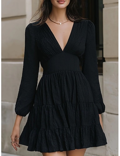 Mujer Mini vestido Vestido negro Vestido informal Vestido de una línea Elegante Moda Moderno Exterior Vacaciones Noche Ajuste regular Plano Manga Larga Escote en Pico Negro Verano Primavera