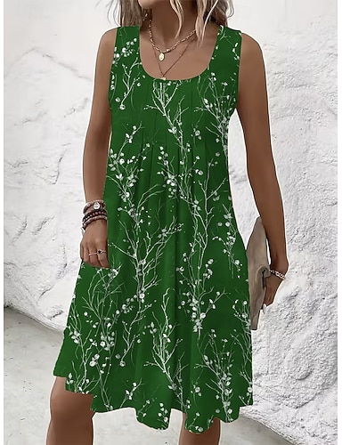 Mujer Mini vestido Vestido de verano Vestido de una línea Vestido sin tirantes Vacaciones Casual Playa Noche Ajuste regular Floral Graphic Sin Mangas Escote en U Azul Piscina Rojo Morado Verde Trébol