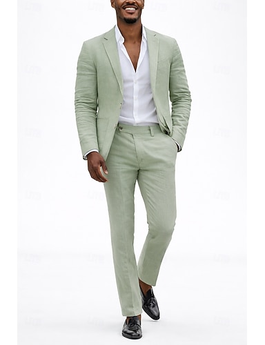 De los hombres Smoking Trajes de Lino Fiesta Boda Azul cielo Salvia Primavera verano Traje Solapa de Pico Moda Ligeras Color sólido A Medida Juego de 2 piezas Recto 2 botones