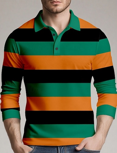 Hombre Tiras horizontales Polo de rugby Manga Larga Camisas de polo Camisas con cuello Ropa deportiva Casual Escuela Exterior Ropa Deportiva Impresión 3D Primavera Otoño Invierno Verde Trébol