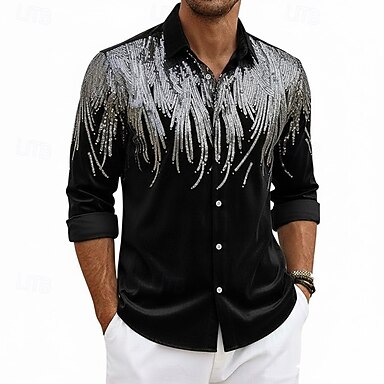 Hombre Camisa Camisa de verano Camisa casual Camisa de playa Abotonar la camisa Camisa de terciopelo Negro Manga Larga Color sólido Diseño Casual Diario Lentejuelas Ropa Moda Casual De moda Cómodo