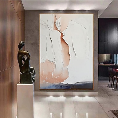 Arte de pared minimalista blanco pintado a mano, arte de yeso, arte de pared con textura mate, arte de pared para el hogar, estructura, pintura abstracta, arte 3D, decoración del hogar, marco listo