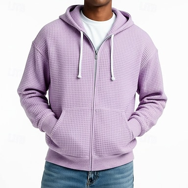 Hombre Sudadera Sudadera con capucha y cremallera completa Sudadera con capucha y diseño de gofres Blanco Verde Claro Azul Marino Verde Oscuro Morado Con Capucha Plano Cerrar Con Texturas Casual